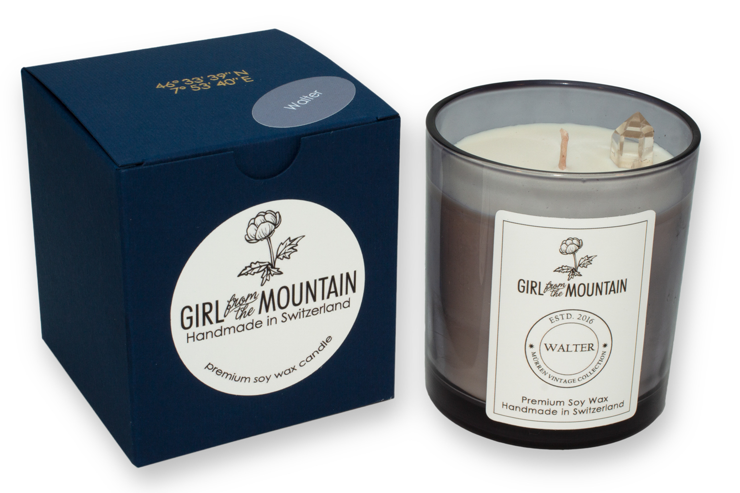 Handgemacht in der Schweiz aus Premium Eco-Sojawachs, bleifreien Bio-Baumwolldochten und hochwertigem Parfumöl.