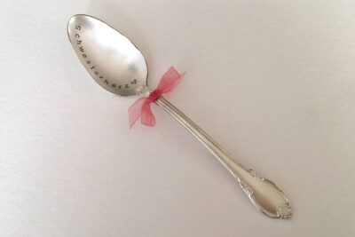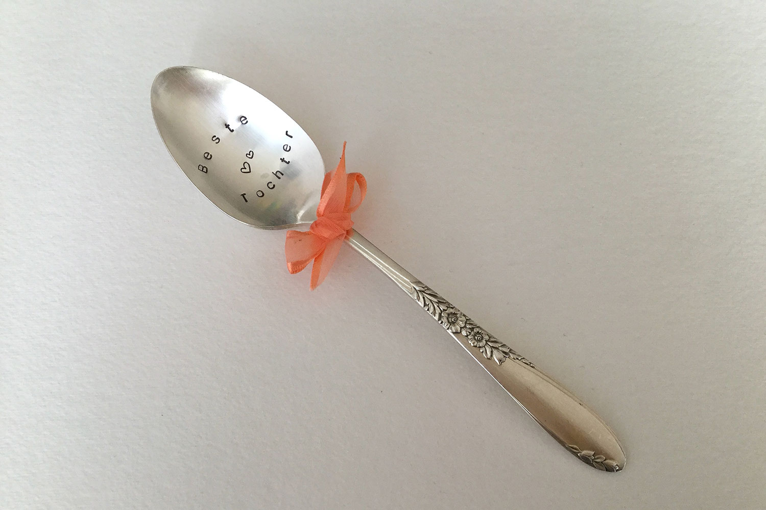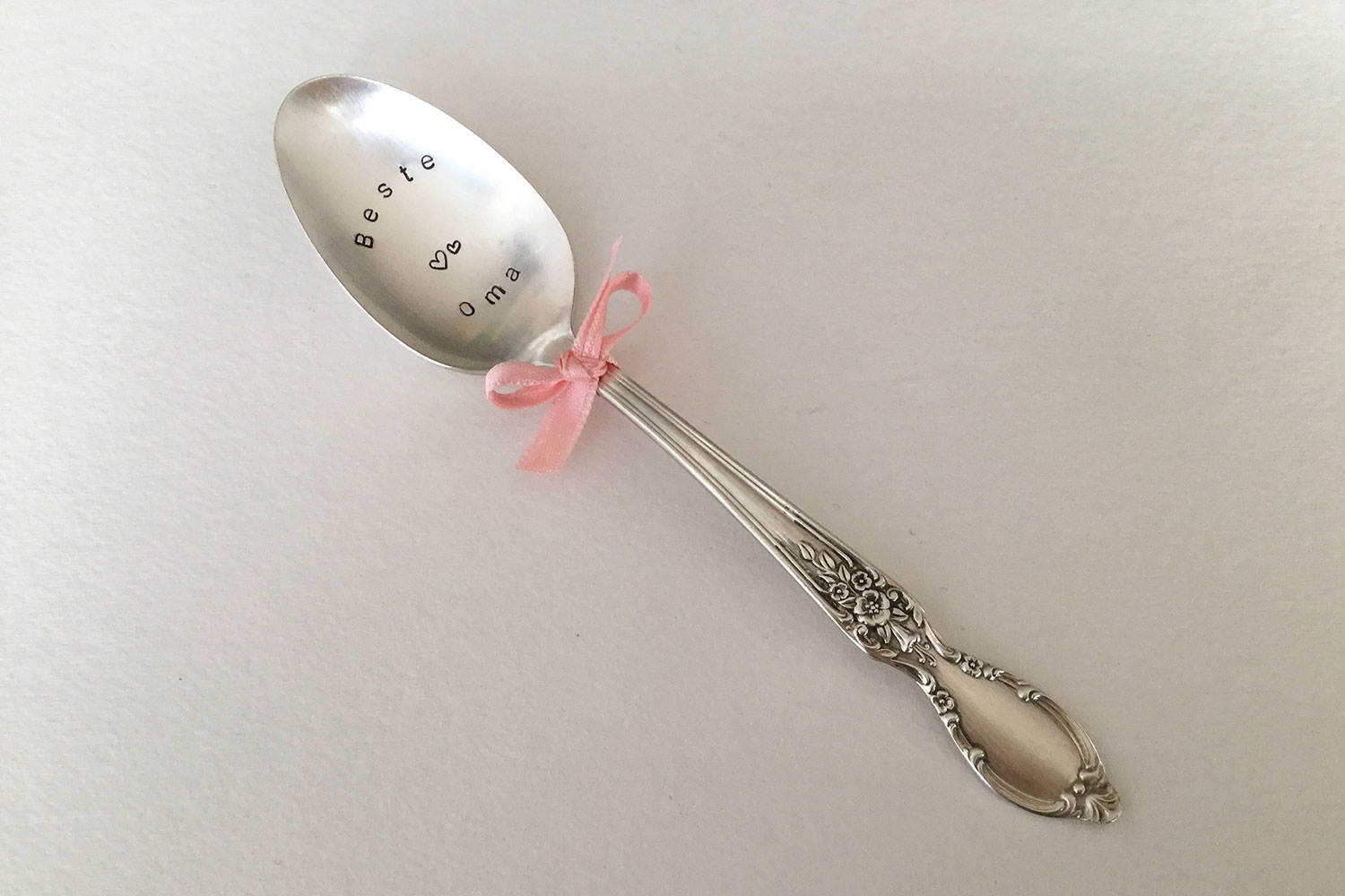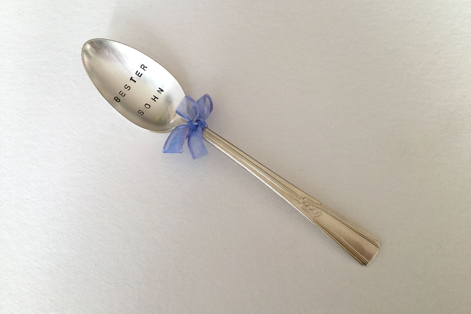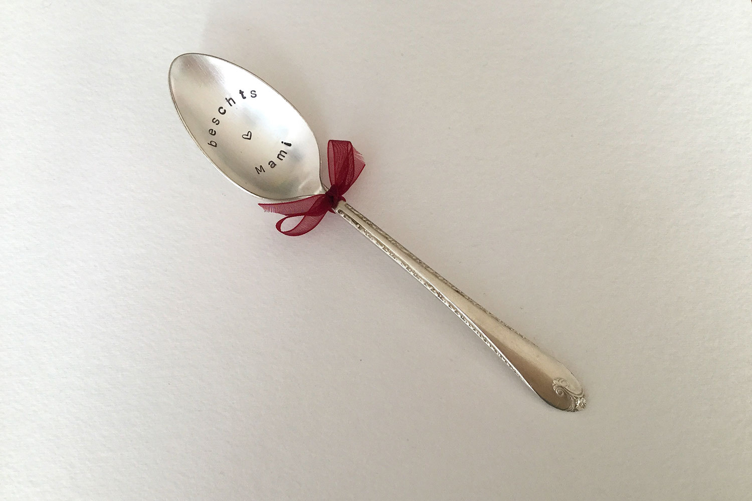 Das Vintage-Besteck von Maya Chelmis erzählt eine Geschichte. Auf der ganzen Welt auf Flohmärkten, aus Familienbesitz und vom Freundeskreis erstanden, werden die Stücke neu aufpoliert und von Hand in Zürich mit der passenden Botschaft versehen. Jedes Stück ist ein Einzelstück. Jedes Stück zaubert ein Lächeln ins Gesicht desjenigen der den Löffel nutzt. Denn zum Kaffeetrinken, Suppe Löffeln, Müesl Essen sind sie da. Ein Stück Geschichte für den Alltag, ein bisschen Liebe für für den Start in den Tag.