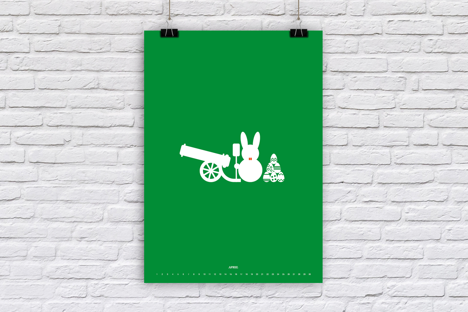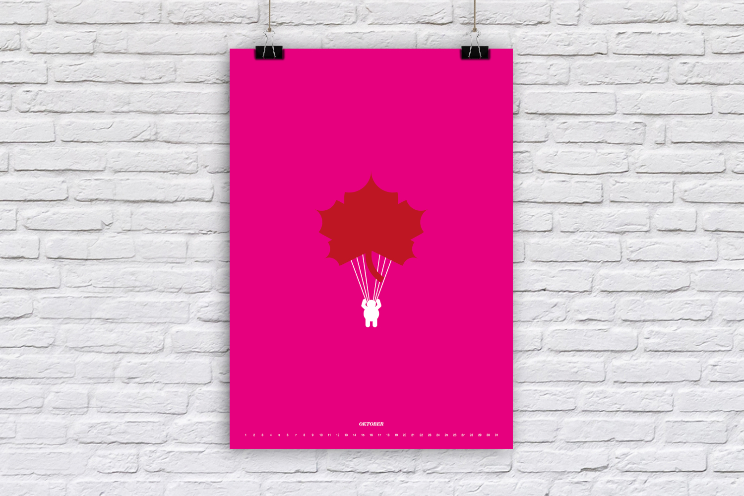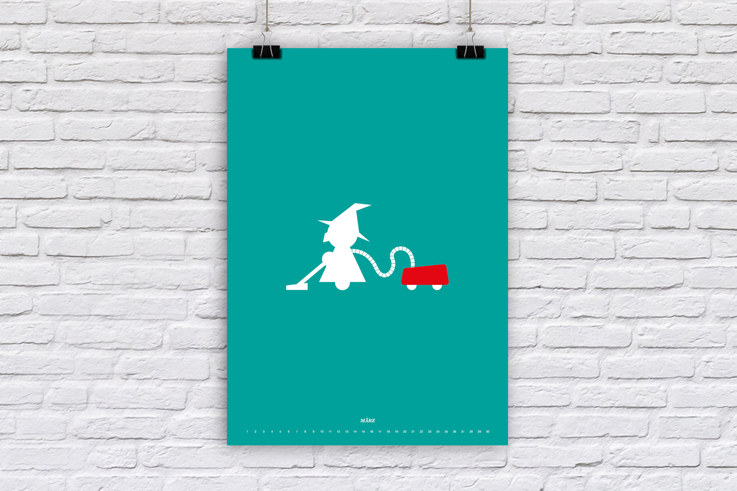Auf eigenständige Art und Weise gestaltet der Designer Fabian Reber Kalender neu. Mit minimalistischer Formgestaltung bringt er eine den Monat charakterisierende Idee auf den Punkt. Die Bilder erzählen kleine, humorvolle Geschichten, die überraschende Sichtweisen eröffnen.