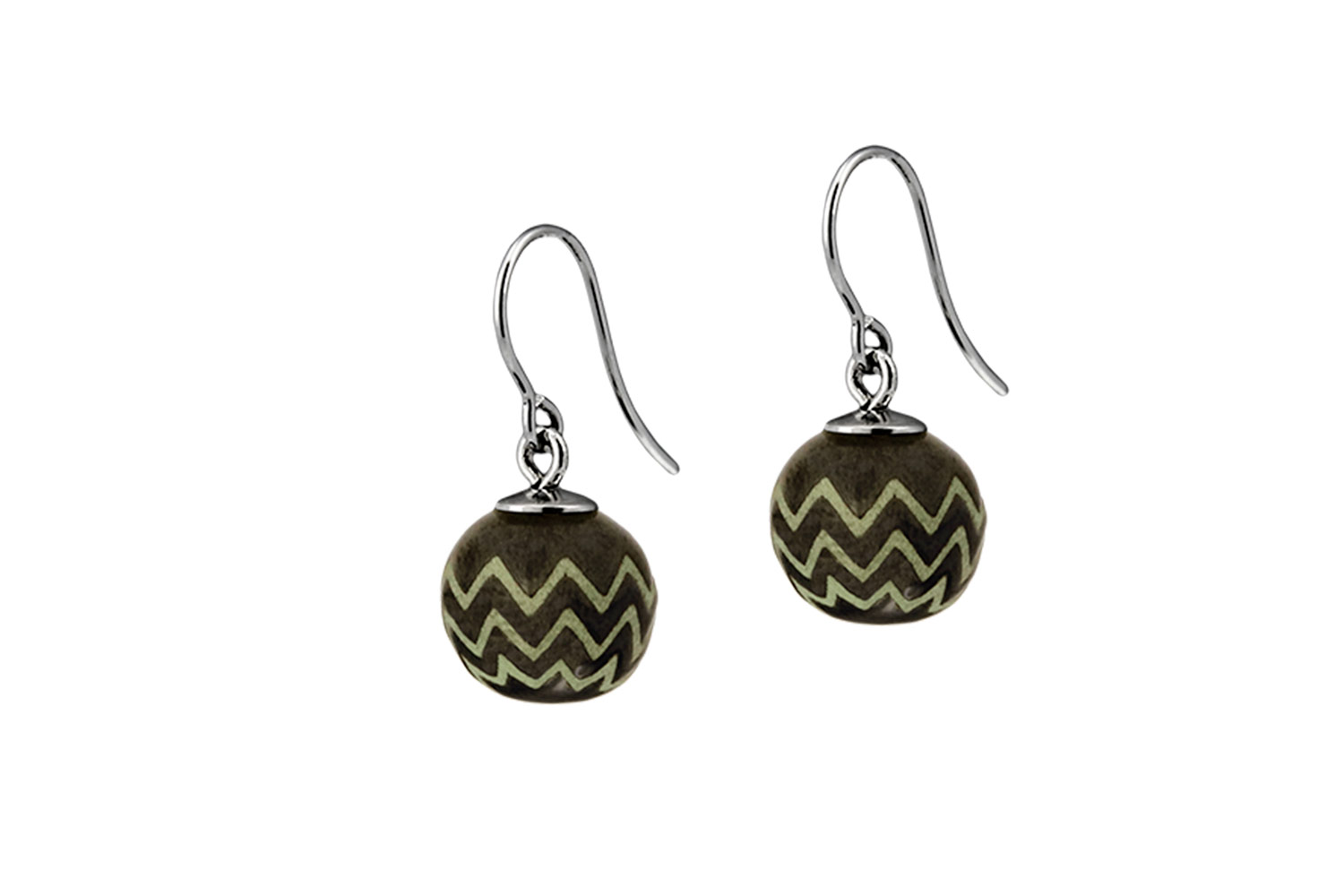 Ohrhänger mit handgefertigter Grafik Keramikkugel