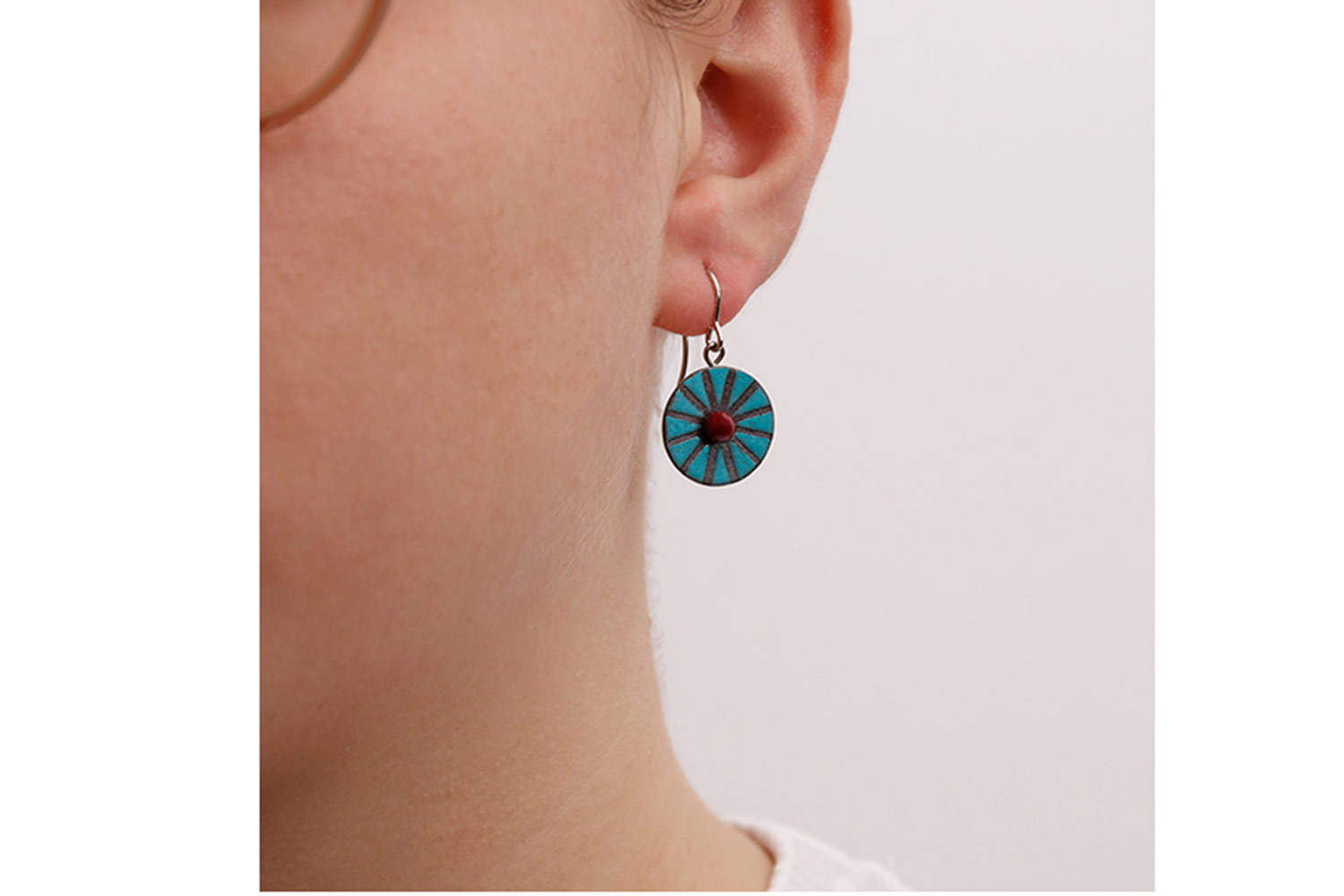 Masse: Ohrhänger als Keramikscheibe mit kleiner Keramikkugel, Scheibengrösse ca. Ø 17 mm, Dicke ca. 2 mm