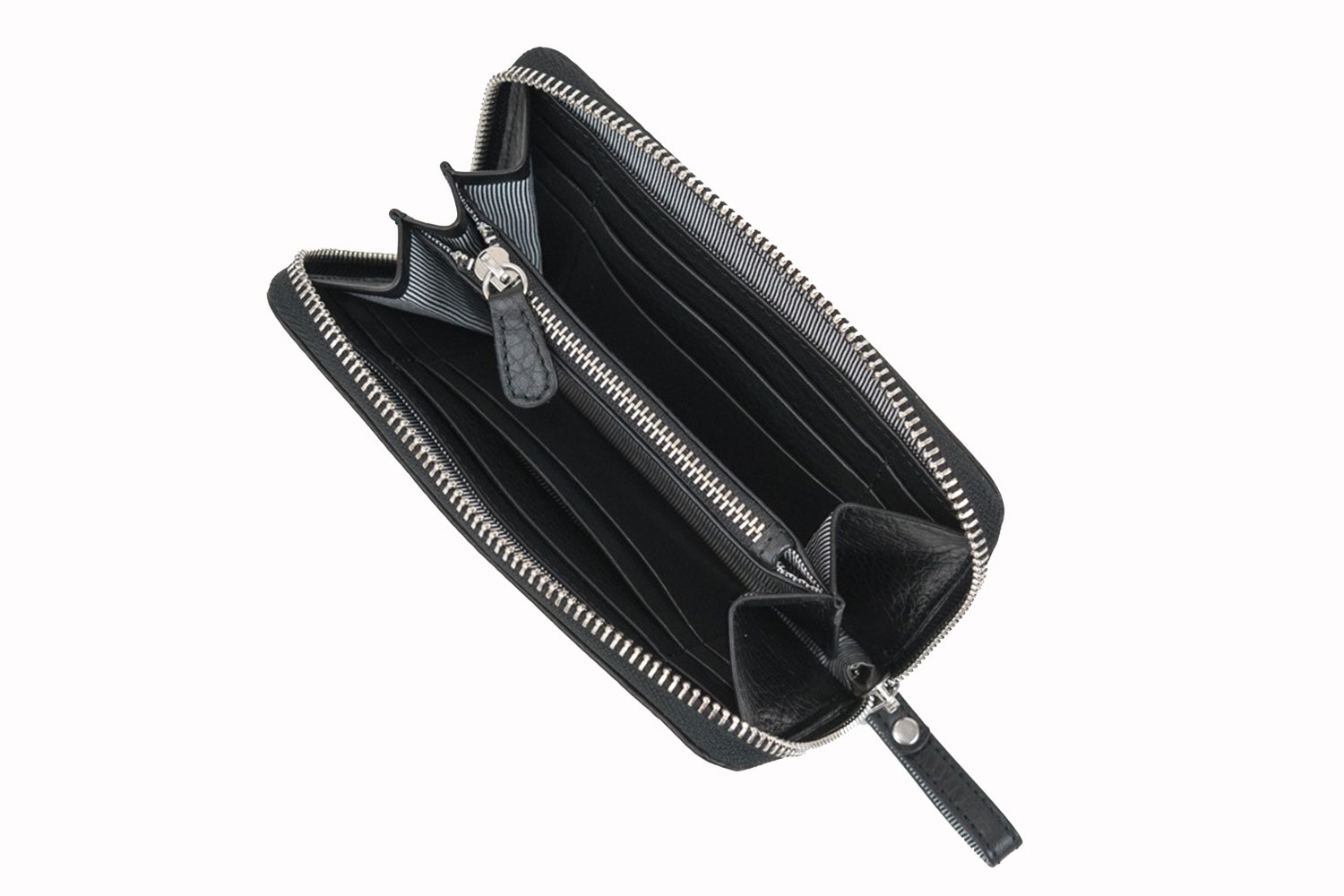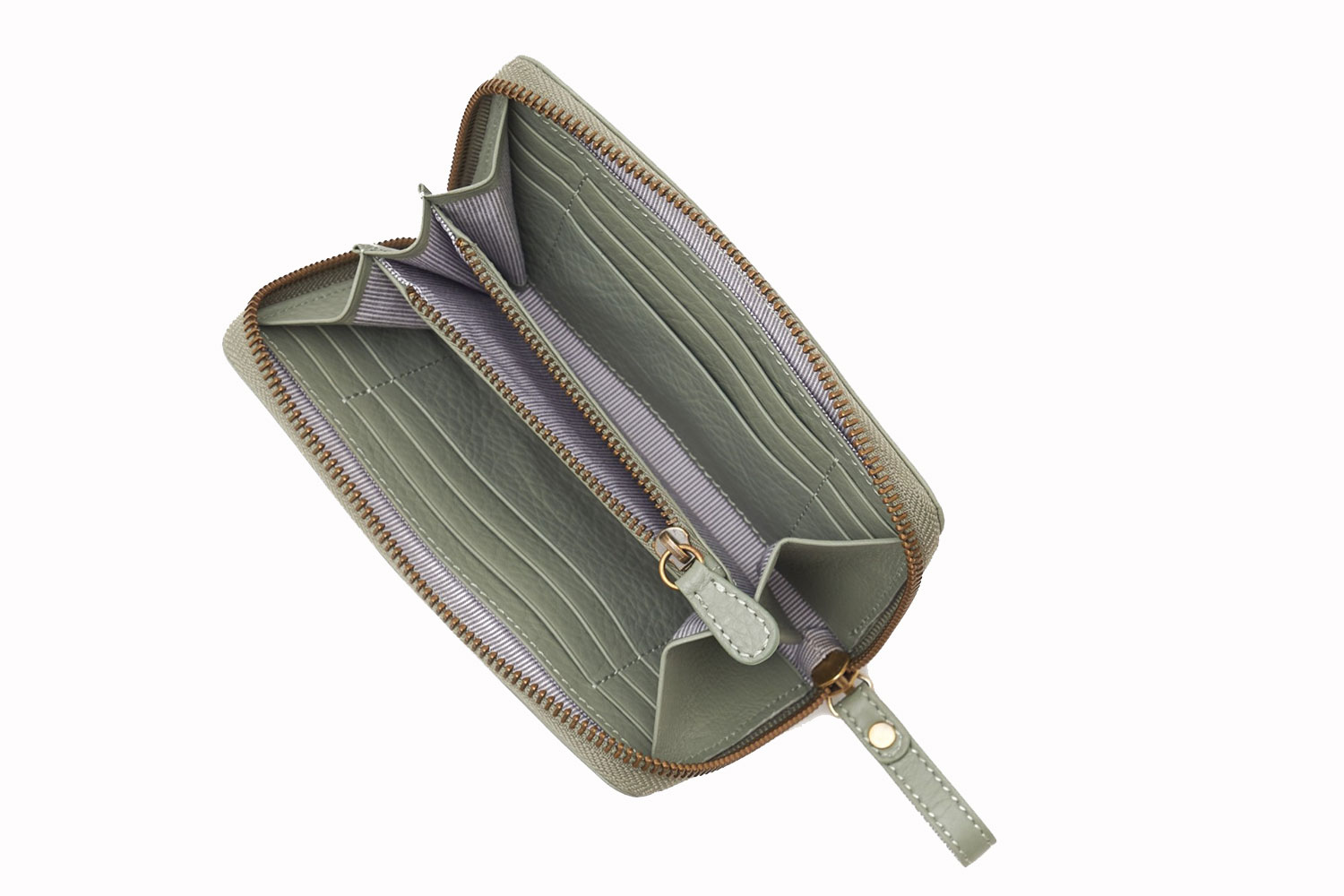 Das mittlere Reissverschluss Portemonnaie ist kompakt und dennoch grosszügig. Es bietet Stauraum für Bargeld (grössere Noten müssen gefaltet werden), Kreditkarten (3 Schlitze auf jeder Seite) und Kleingeld in der Mitte.
