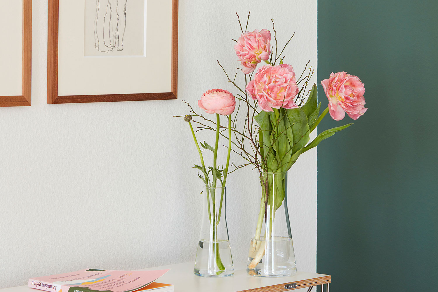 Eine stilvolle Vase mit frischen Schnittblumen, einem schönen Ast oder – momentan sehr im Trend – getrockneten und somit klimafreundlichen Sträussen verleiht jedem Raum Frische, Freundlichkeit und Leben.