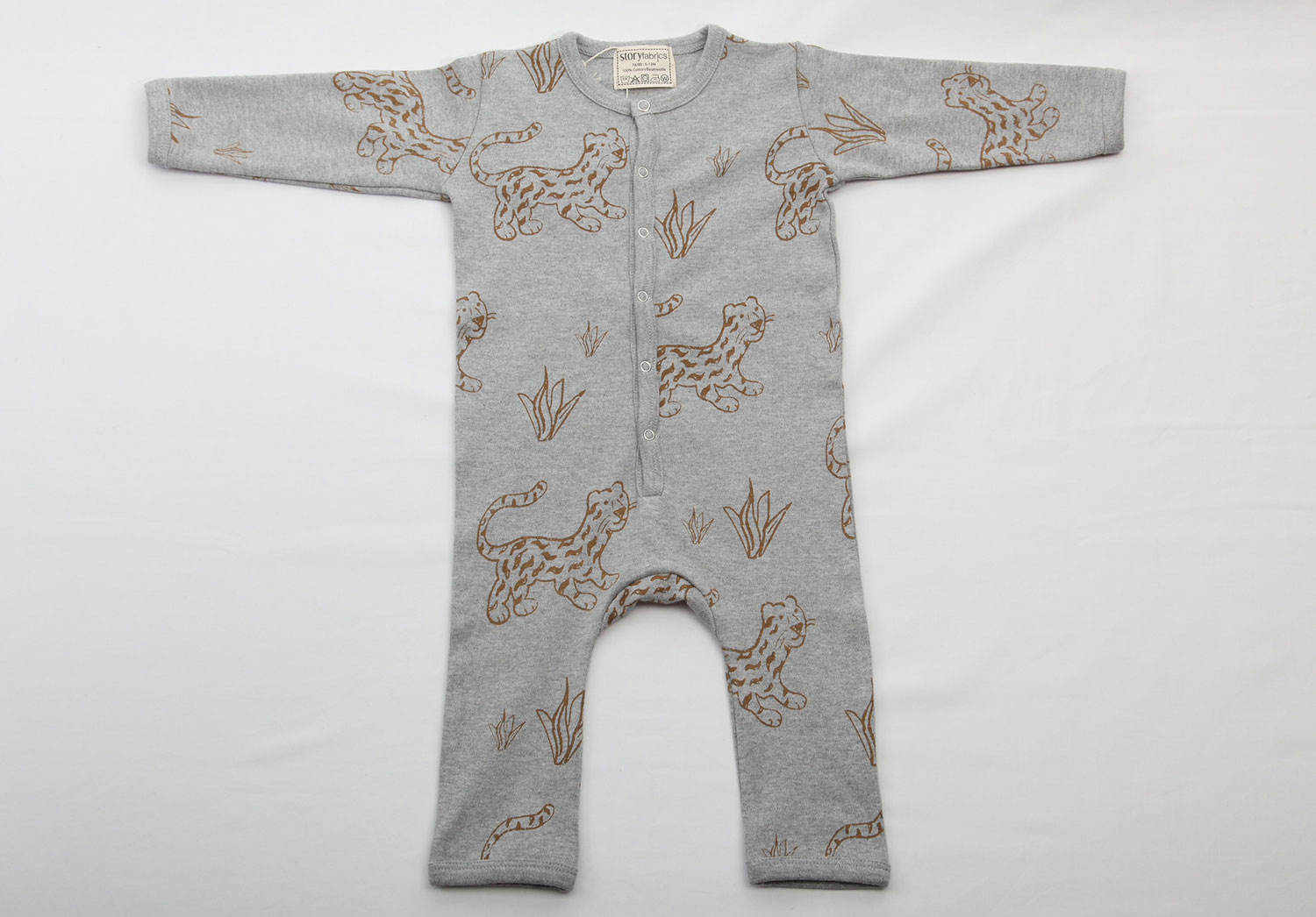 Unsere Strampler bestehen aus 100% biologischer und Fairtrade zertifizierter Baumwolle. Die Strampler sind Teil der Design Collab mit cullycully und werden von Girish und seinem Team in Tiruppur genäht und mit einem Handsiebdruck individuell verschönert. Der wunderbare Gepard-Druck macht auf die vom Aussterben bedrohten indischen Geparde aufmerksam und nimmt dich mit auf eine kleine Entdeckerreise.