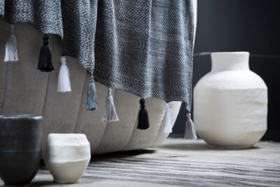 Die Strickdecken bestehen aus 100% biologischer und Fairtrade zertifizierter Baumwolle. Die Decken werden aus bestehendem Garn gestrickt, welches vor Ort persönlich ausgesucht wird, um die natürlichen Ressourcen zu schonen.