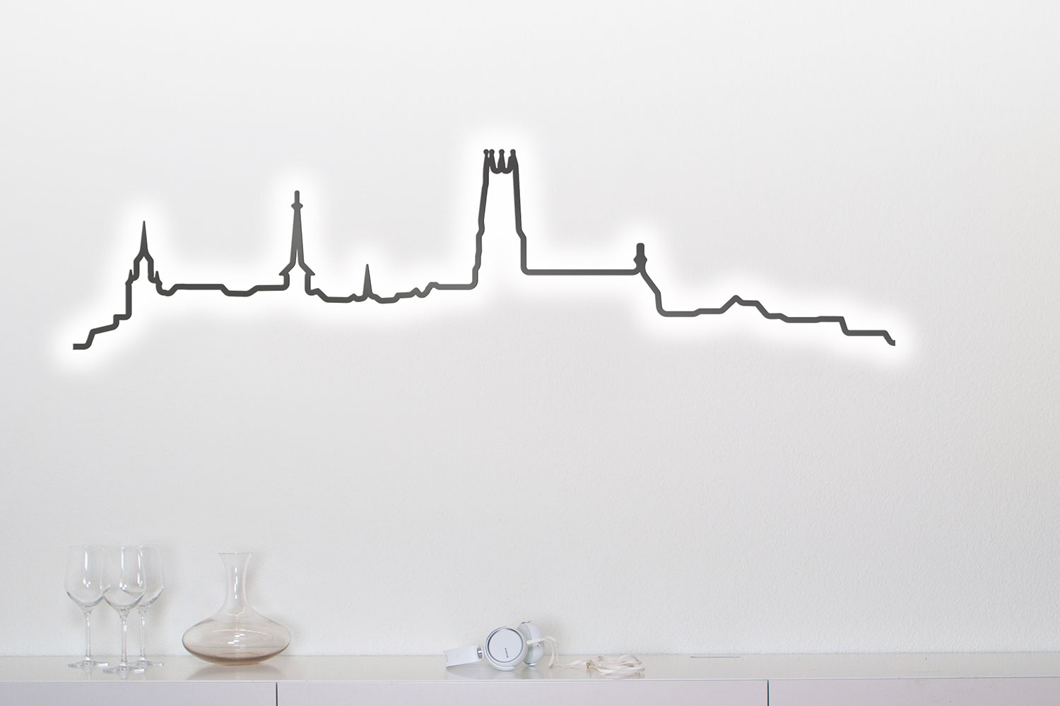 Die Panorama-Wandleuchte KONTURA CITY der Berner Designerin Susanne Heinzer bietet ein kunstvolles Wohnerlebnis. KONTURA CITY ist eine neue Leuchten-Form, welche dezent im Hintergrund bleibt und dennoch Akzente setzt.